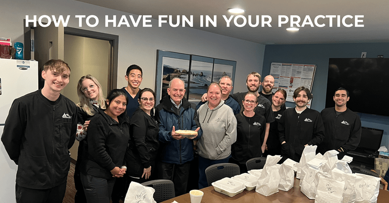 If your work environment is one that you are only enduring and not enjoying, it drains your energy. Creating a workplace in which enjoyment thrives alongside patient care and productivity is vital. Here are some ways to evolve your practice and team culture so that you are having fun every day: