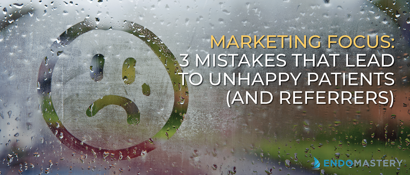 An unhappy patient spreads their unhappiness. They report a poor experience back to their referring doctor or clutter up your Yelp and Google reviews with 1-star ratings. If you scan those reviews, most of them are the result of factors within the control of the endodontic practice. Here is what you and your team need to avoid:
