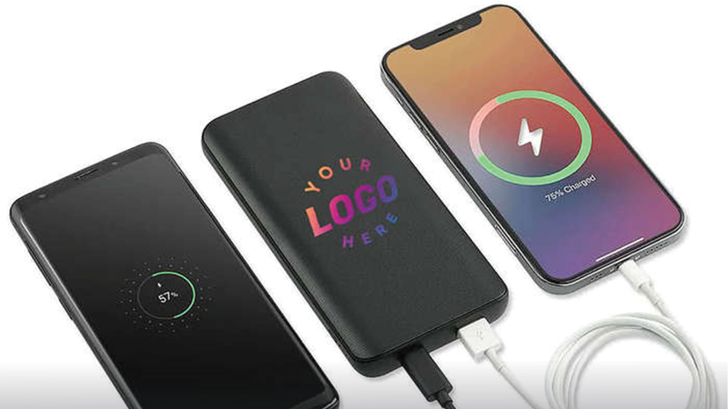 Stay top of mind while helping your referrals stay connected! Add your logo for a professional touch and brand visibility all season long. One great example is a compact credit card-sized power bank, the other example is a wireless power bank, both from Custom Ink: