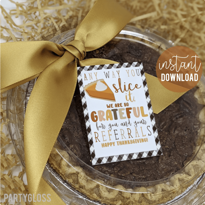 Whether pumpkin, pecan or apple, dropping off a pie at referring offices is a great way to kick off the holiday season. You can download the low-cost digital printable below or create your own to express your gratitude.