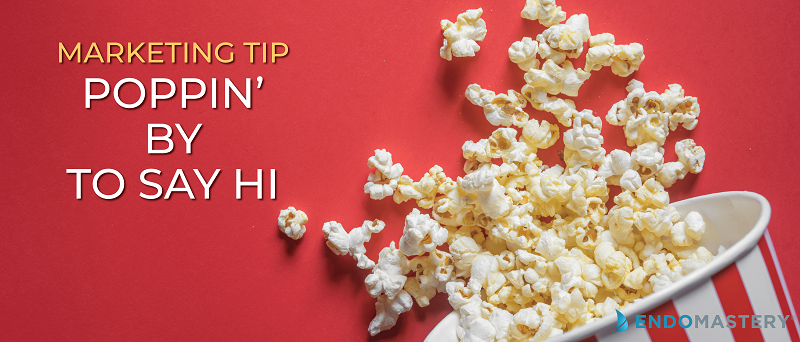 “Poppin’ by to say hi!” … that’s an easy one, and one that everyone loves. Popcorn snacks are a great favorite, and you can provide them in different ways: